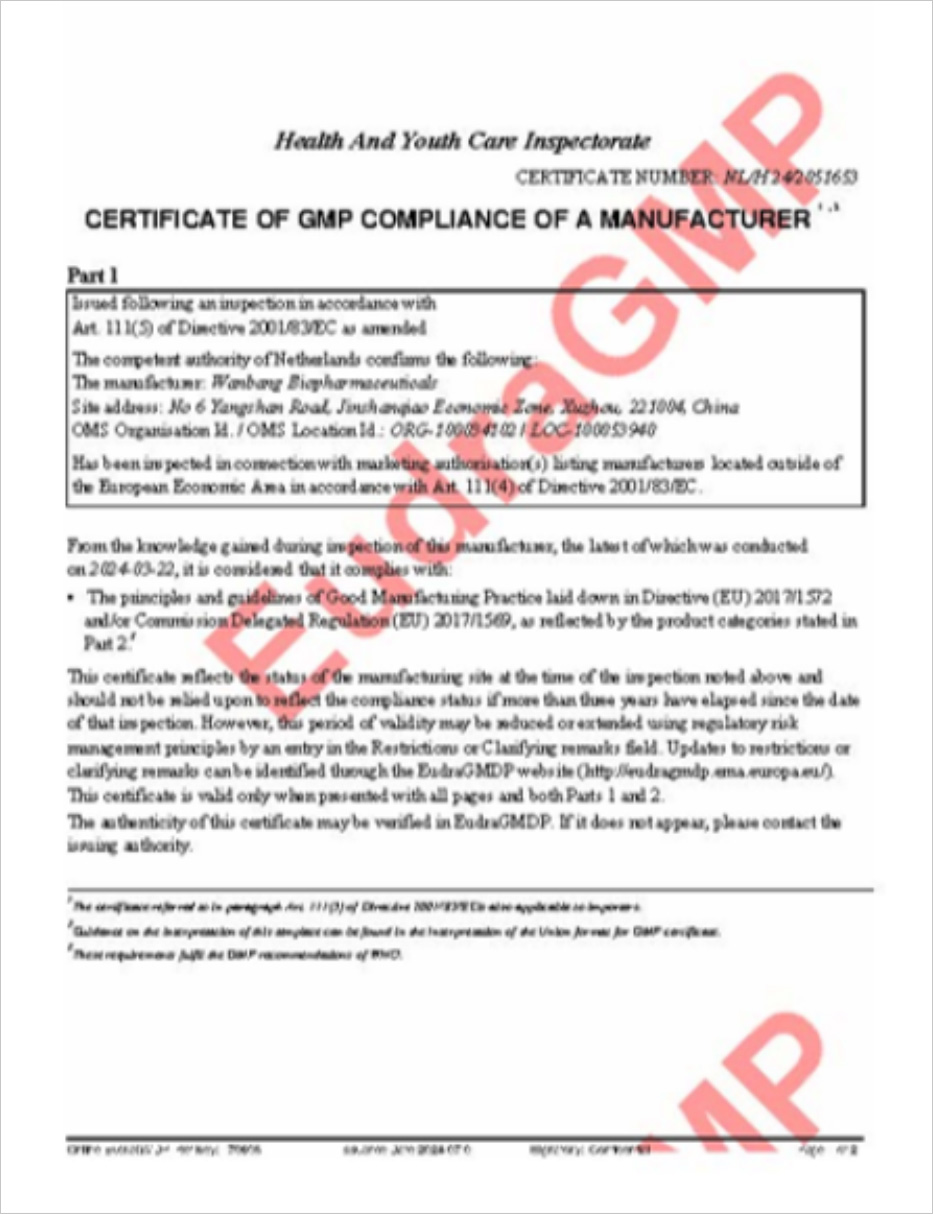Manufacturing site in Xuzhou, which locates at Yangshan Road in Jinshanqiao Development Zone, passed the full GMP inspection from US FDA.
