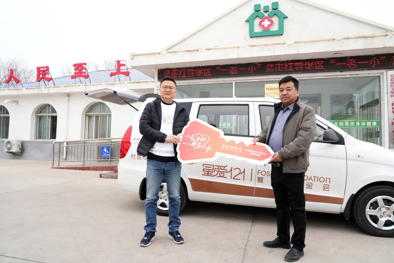 为了更好地助力红寺堡医疗服务水平提升,这次复星基金会公益一行又为红寺堡带来了基层巡诊专用车及国产高血压治疗一线用药。1月29日,在太阳山镇卫生院,陈玉卿代表复星医药完成了专用车捐赠仪式,这是复星基金会了解红寺堡的基层巡诊实际需求后由复星北铃精准定制的,适配乡村路况与诊疗场景。太阳山镇卫生院马学峰书记在捐赠现场难掩激动:“这辆车将成为我们延伸诊疗服务的‘移动健康阵地’:它既能搭载体检设备深入偏远村落,为老年、慢病等重点人群提供上门体检、健康监测服务;又能支撑家庭医生团队高效履约,让健康宣教、疫苗接种、慢病随访等服务直达田间地头,彻底破解服务覆盖难题,切实提升健康管理质量。” 与此同时,复星医药捐赠的一批国产高血压治疗一线用药沙库巴曲缬沙坦钠片(一心坦)也将通过本地医疗机构惠及给有需求的患者,减轻患者负担。